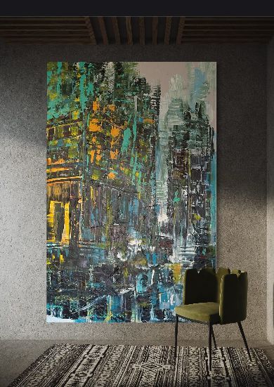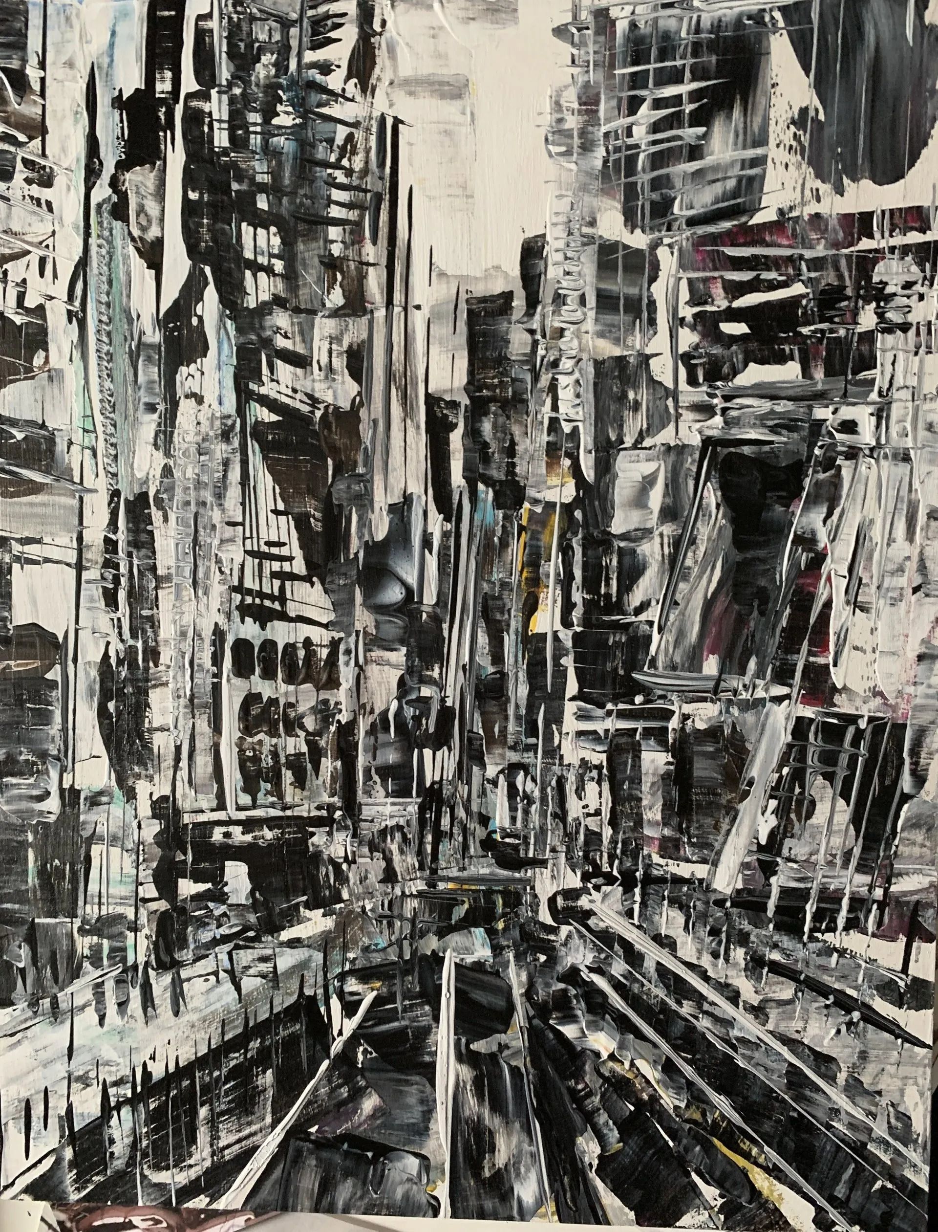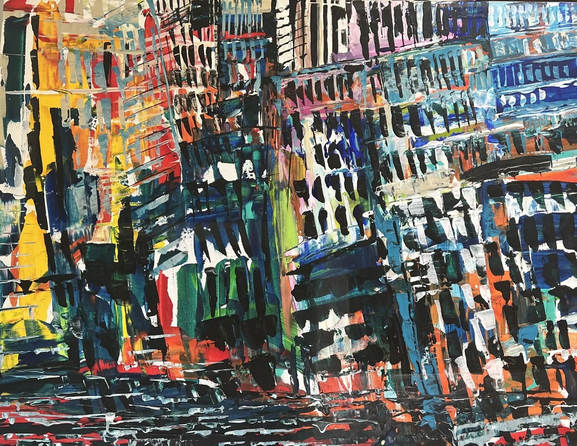 Multilayering and deconstruction figure prominently in my atmospheric interpretations of NYC and the surrounds. As my eyesight is deteriorating with age, my primary focus is experimenting with light, abstractions and shapes. During the shutdown I came to appreciate capturing the streets when they were empty, because it was so unusual up to that point. Palette knives allow me to layer paint quickly evoking a spontaneous fresh look and energy. Quickly constructing and deconstructing ideas on canvas has taught me to give into and learn from serendipitous mistakes. Fostering mistakes and knowing which are welcome has lead to discovering new techniques.