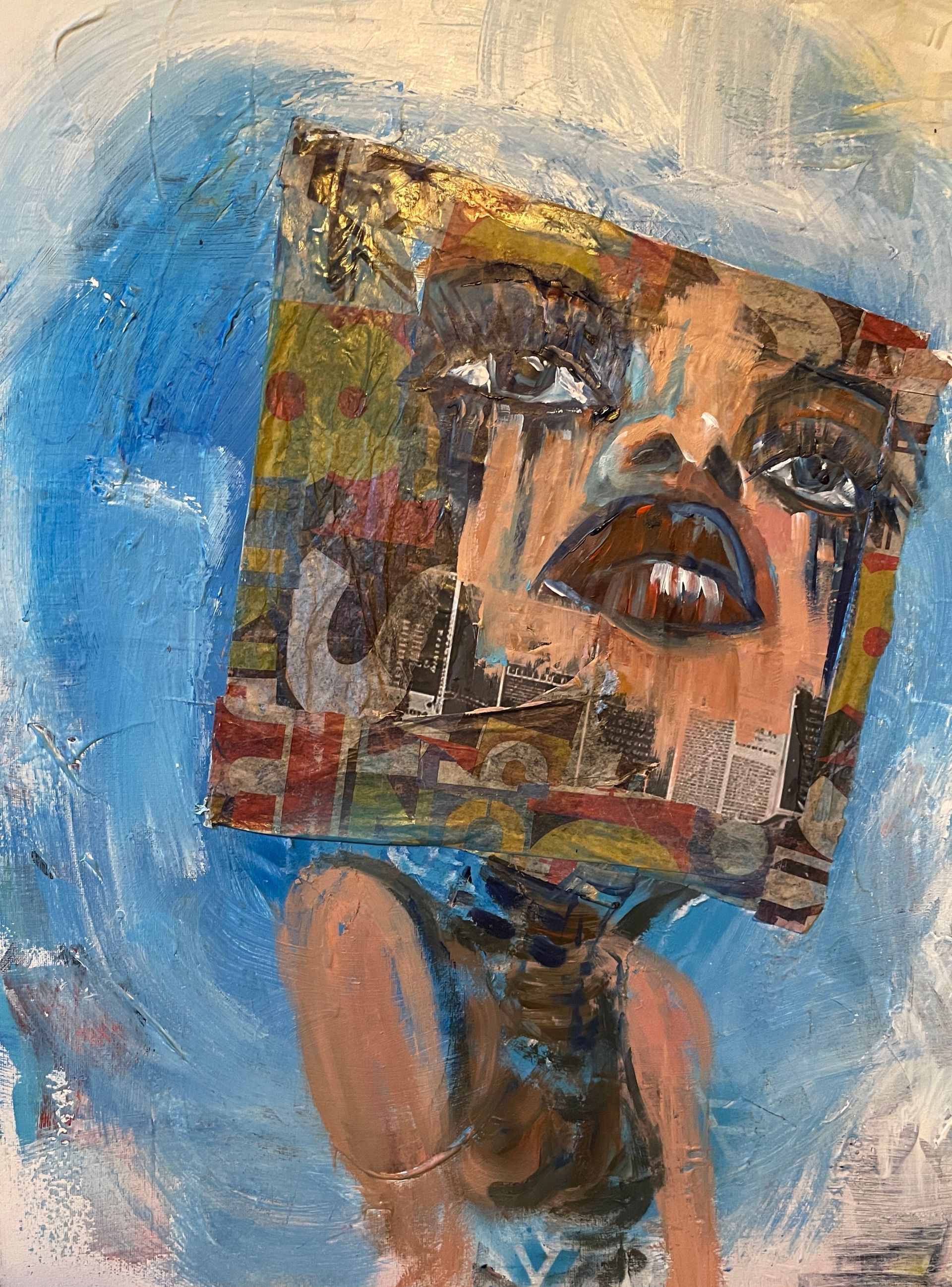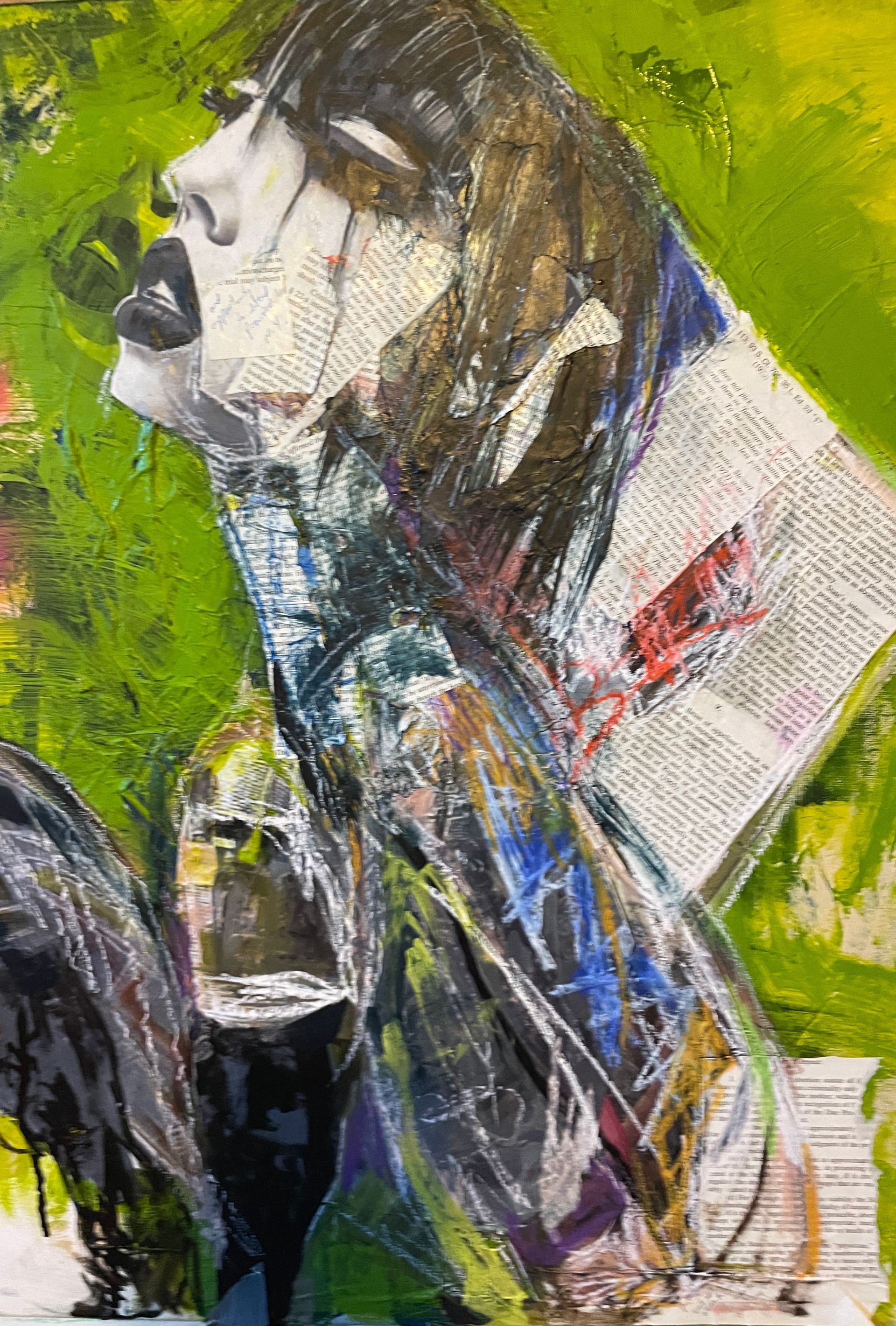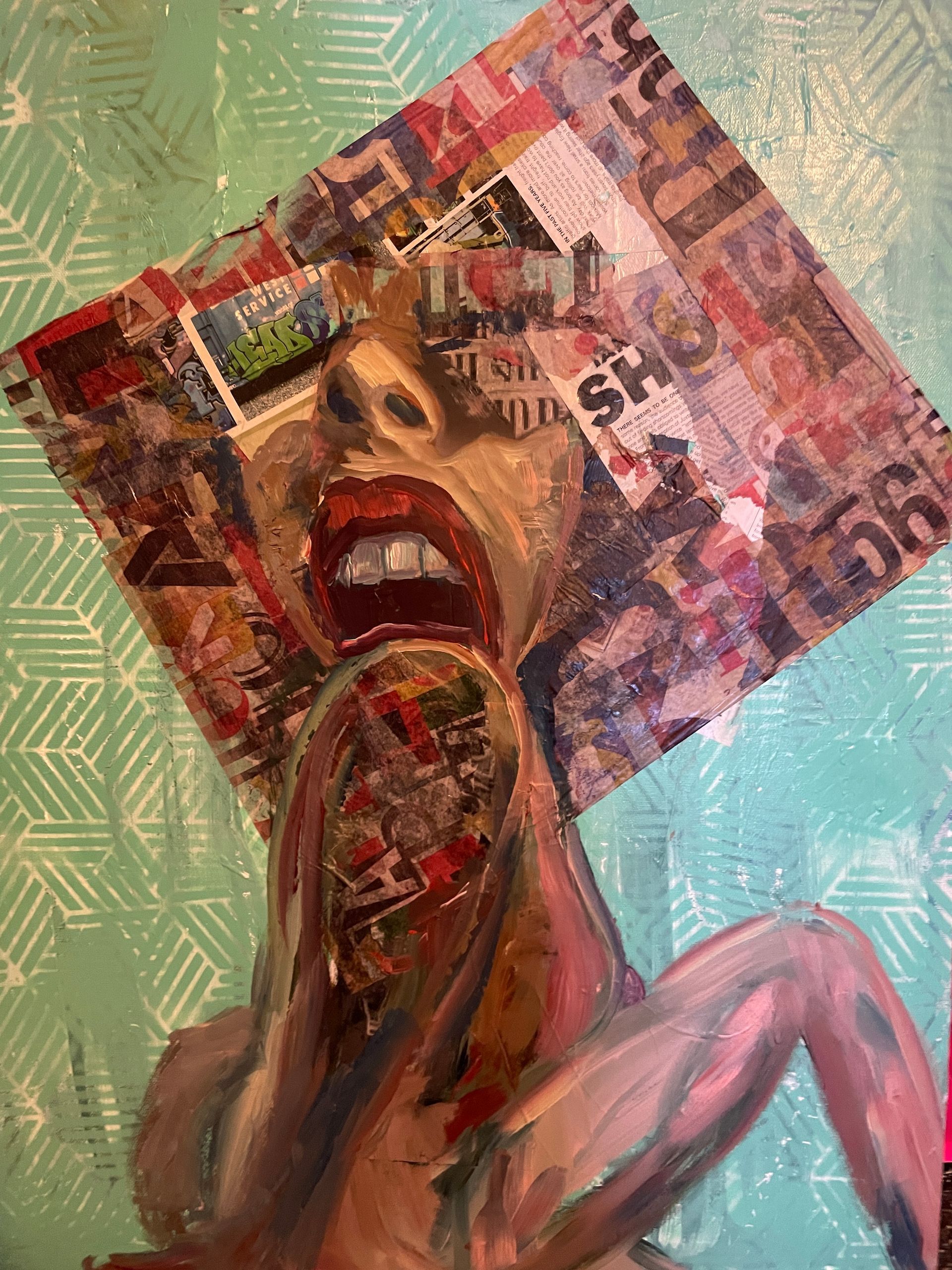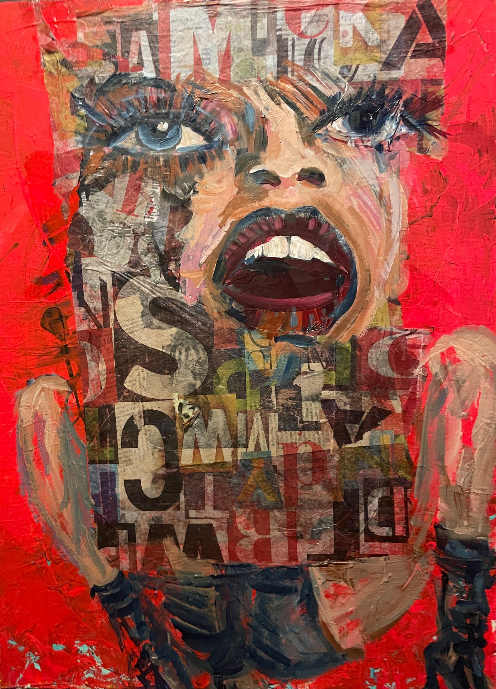 Empowering feminist themes are often addressed through my work. A visual entryway to open social discourse and promote women through art activism challenging the status quo, as well as tackling stereotypes and double standards. The paper doll series is an empowering body of artwork that uniquely addresses the objectification of women and how that is changing with the advancements in technology revolving around AI transforming our own perceptions of the world we live in today. Exploring that reality and somewhere just outside of it displacing the objectification into a hybrid robotic fractured existence.