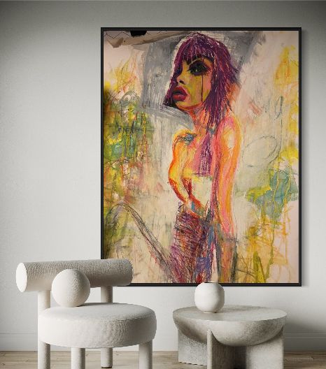 Using almost childlike crayon markings in combination with wildly spontaneous large abstract paintings. Here I've been working with water soluble crayons, acrylics, gouache, spray-paint, charcoal, grease crayons and collage to develop tension and texture. Pulling the paints in every direction and working very loosely developing both a painterly effect in combination with loose drawings.a somewhat imaginary space hoverering in a hybrid human + bot existence currently fluctuating between real + imaginary.