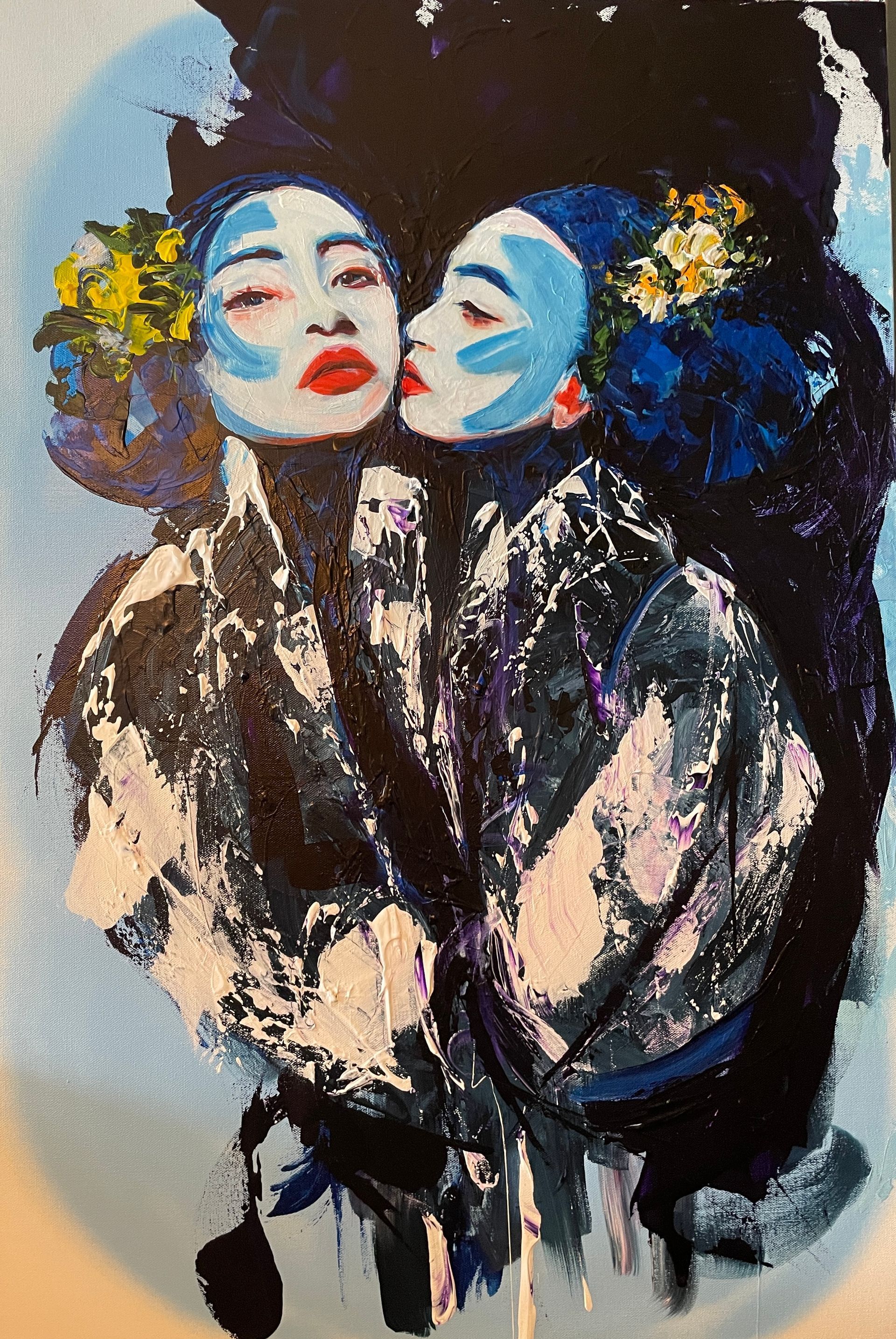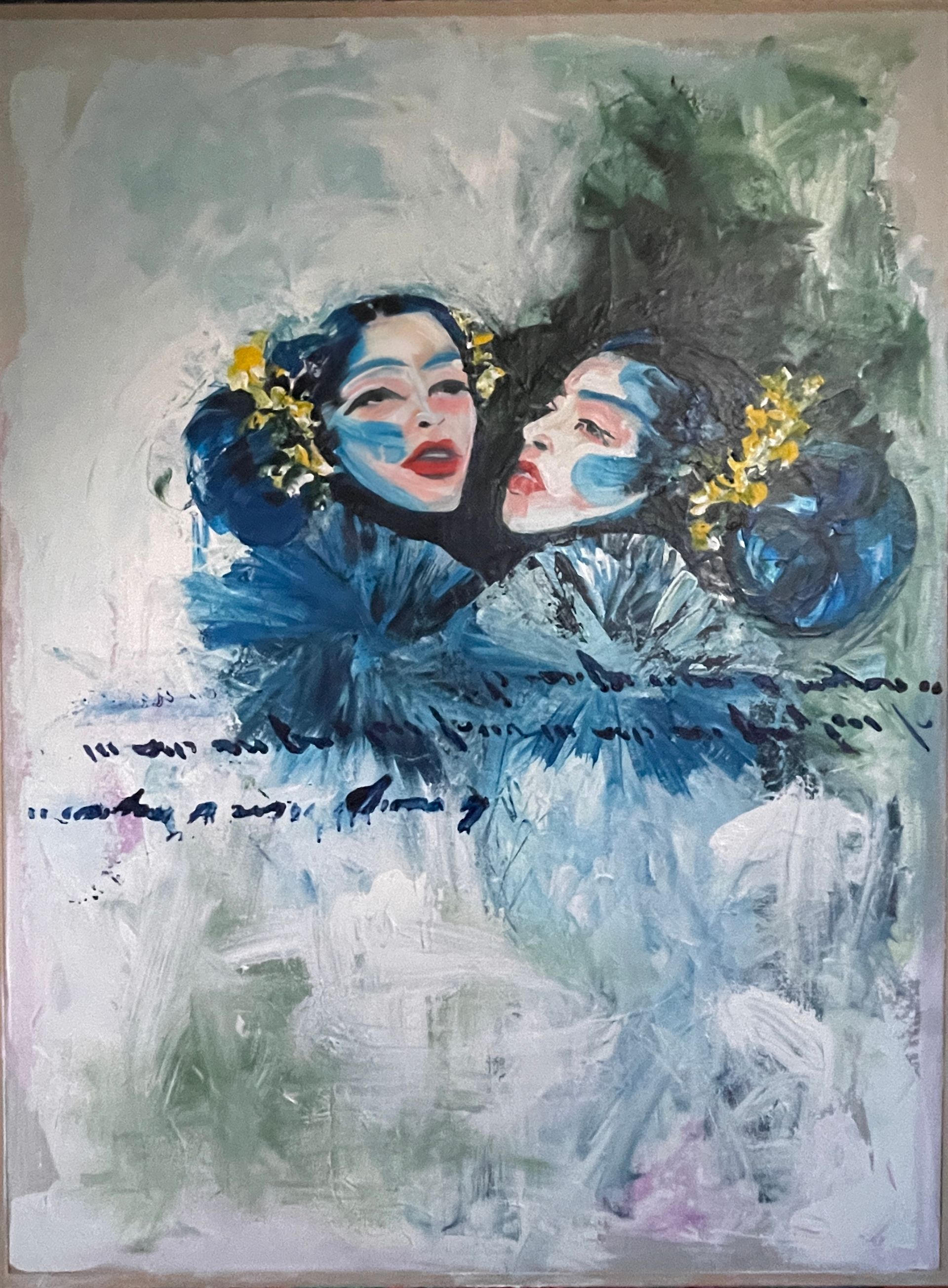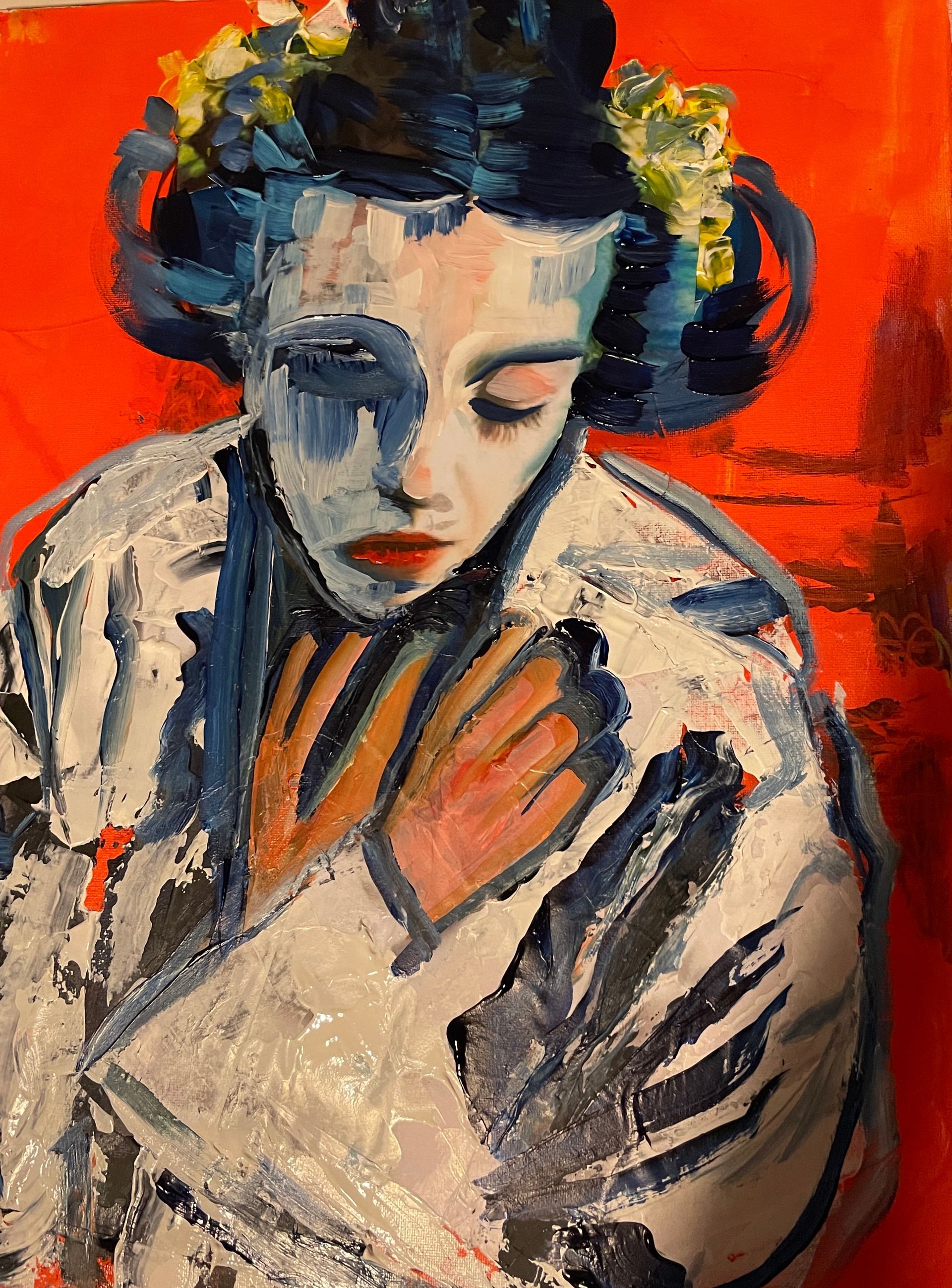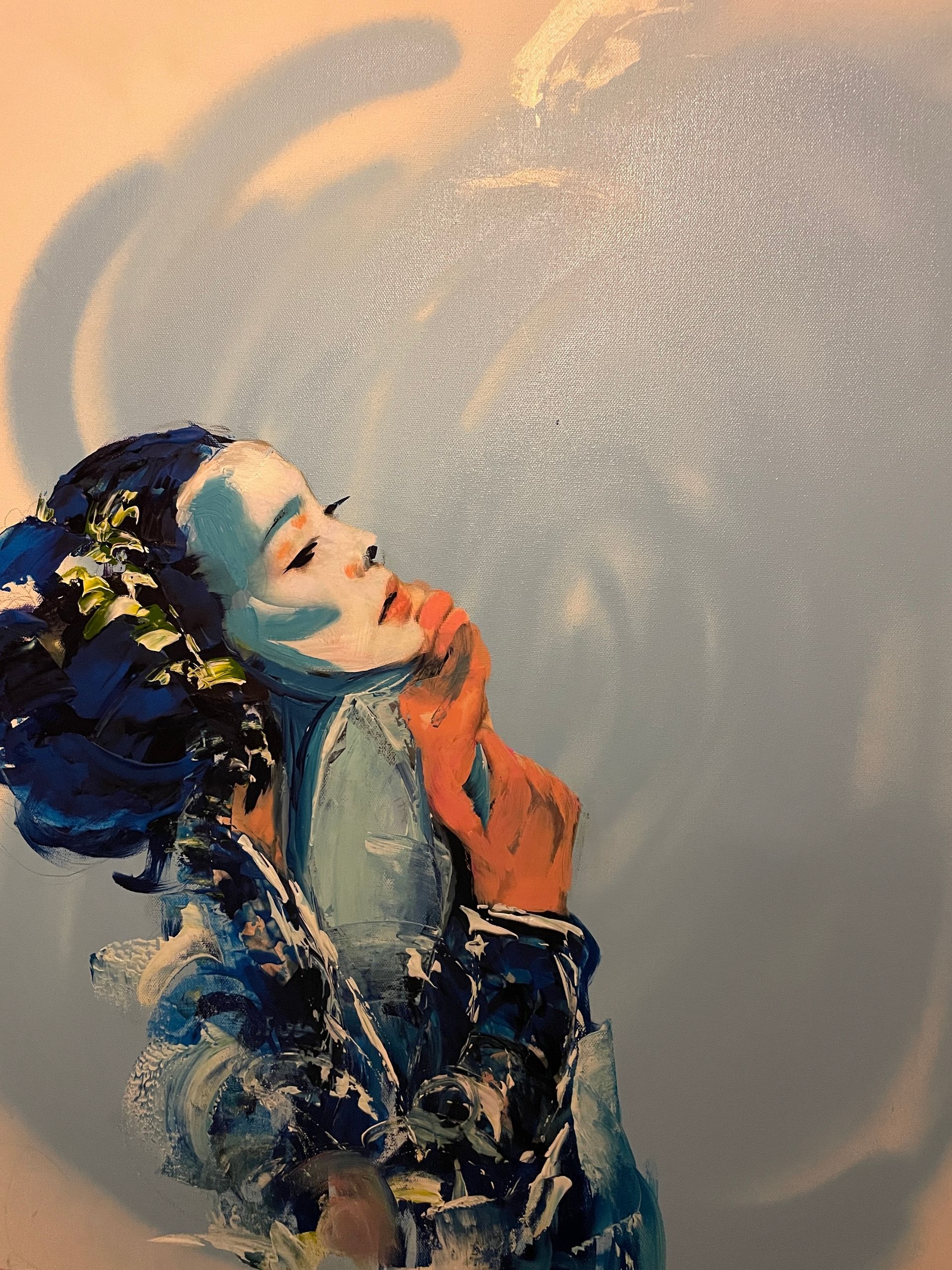 The works from ‘Serie: Les Portraits Aux Cheveux Bleus’ are an amalgamation of real and imaginary figuration rooted in a holistic mindset & a curiosity for eastern cultures likely stemming from a childhood gift of a geisha doll from my Uncle who had been stationed in Okinawa.
