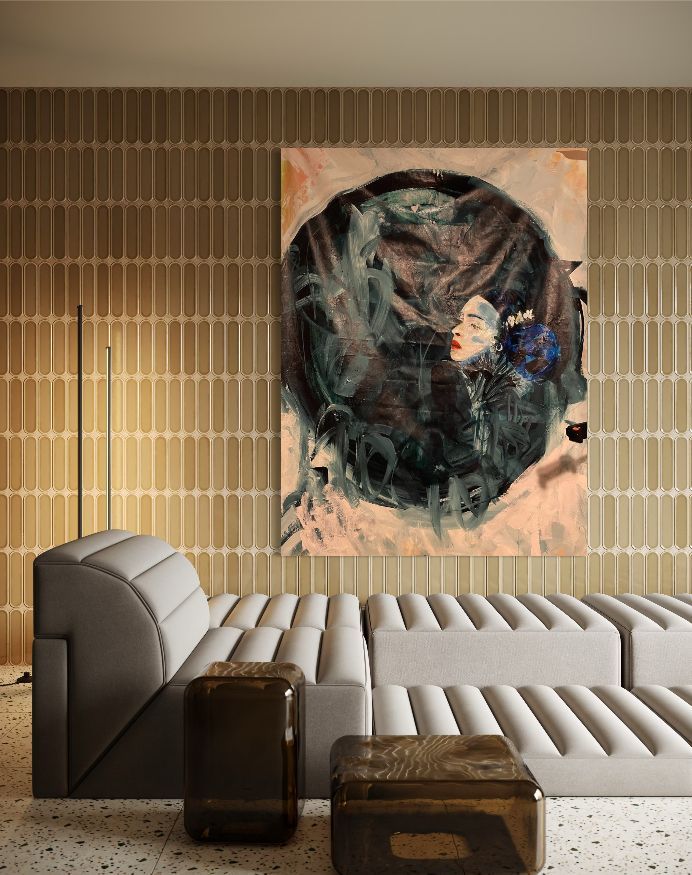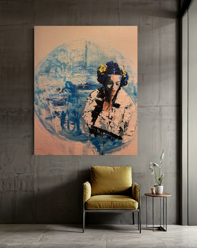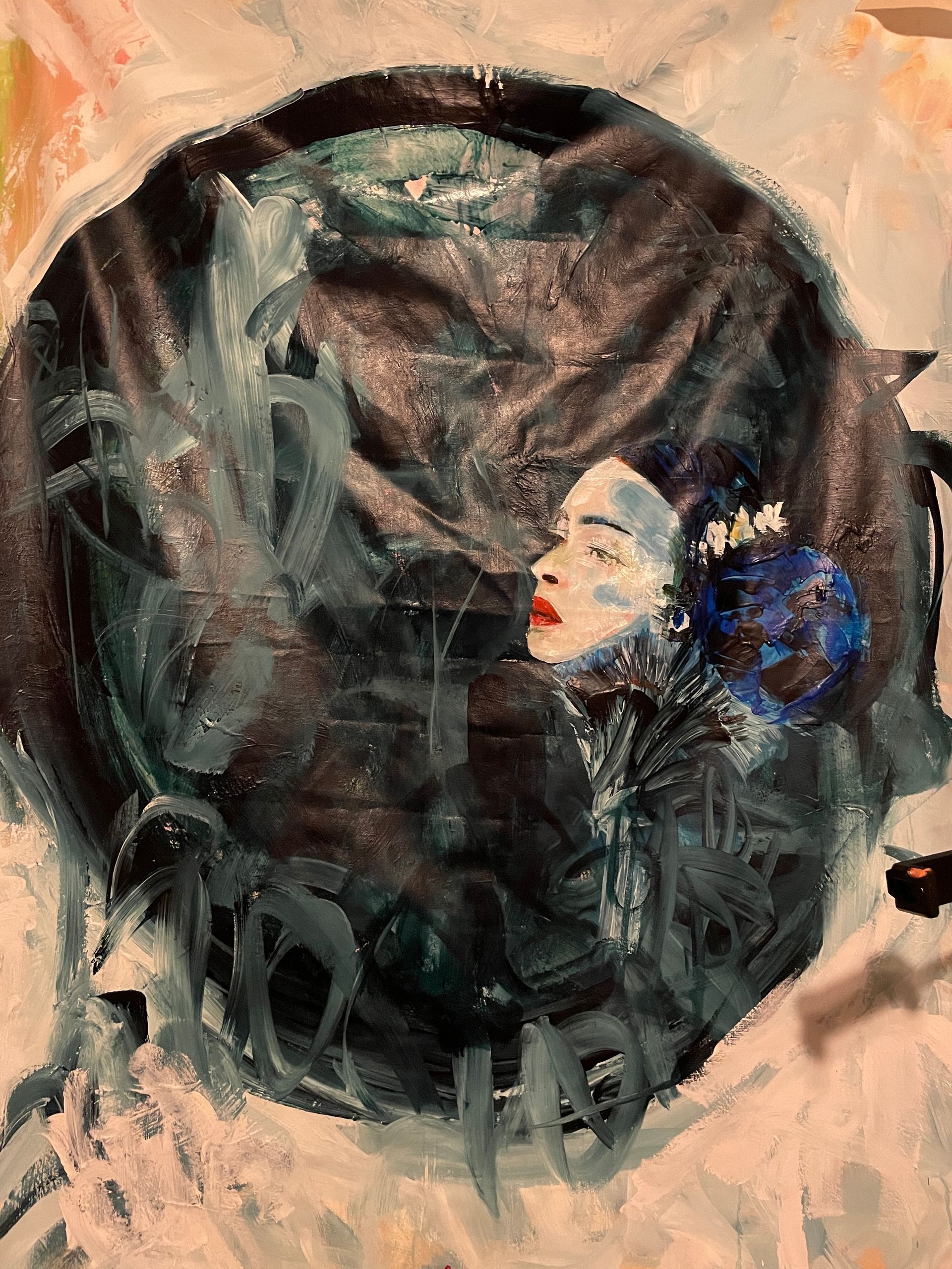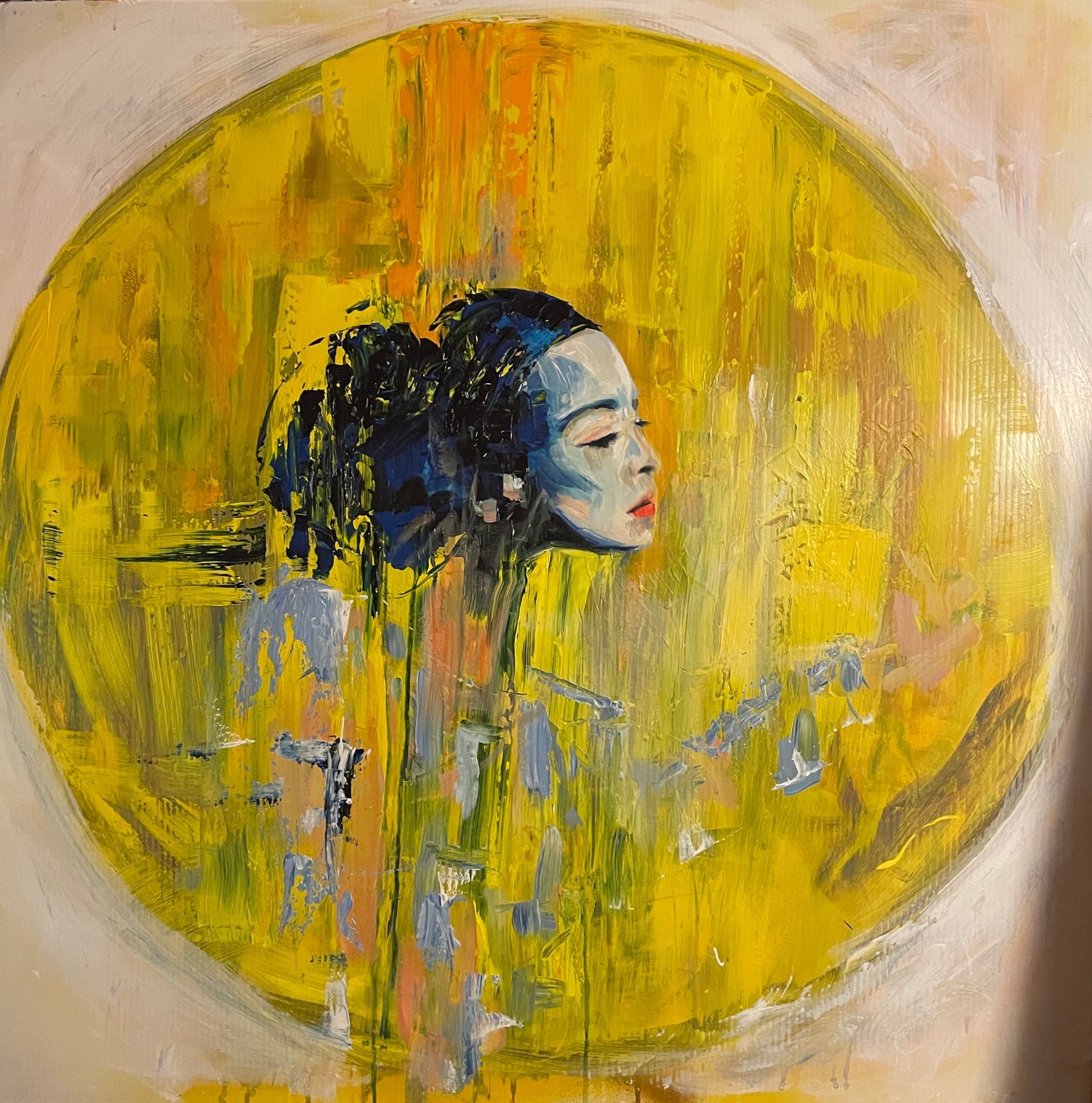 The works from ‘Serie: Les Portraits Aux Cheveux Bleus’ are an amalgamation of real and imaginary figuration rooted in a holistic mindset & a curiosity for eastern cultures likely stemming from a childhood gift of a geisha doll from my Uncle who had been stationed in Okinawa.