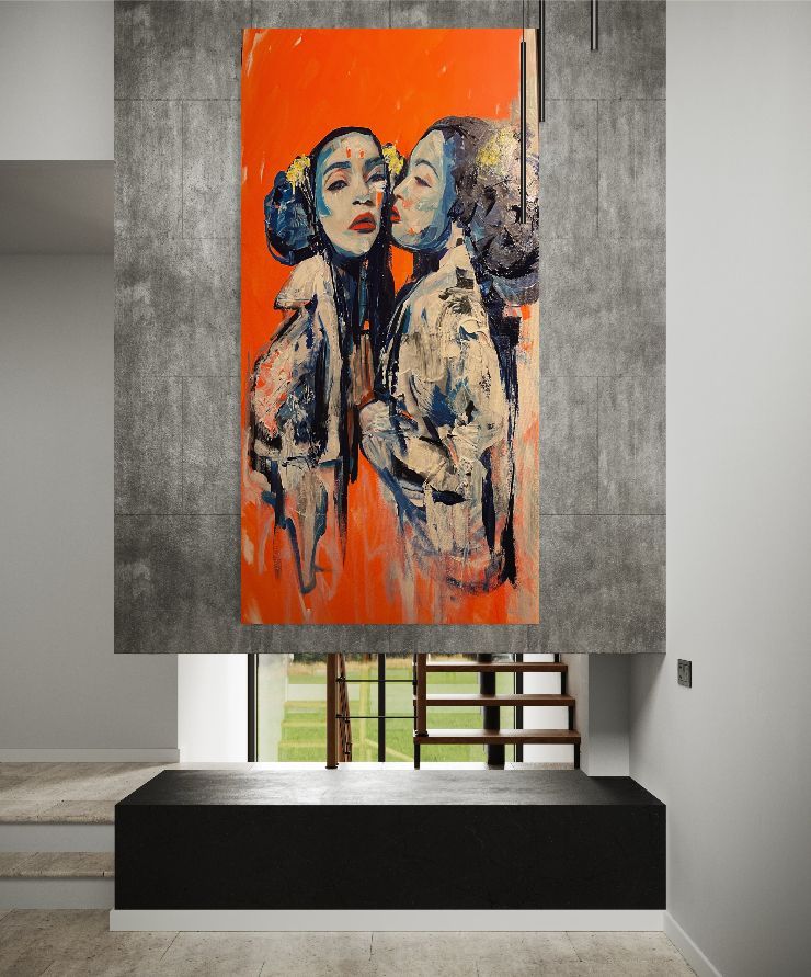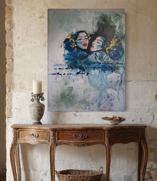 In what could be seen as shapeshifting using the concept of the face as a mask exploring the self as a mirror of reflection or polarization of figures in and out of space, in and out of past or present, body or mind emphasize how they resonate invoking an ethereal quality. Leaving space for the viewer’s interpretation of what the paintings bring out, which is unique to each individual.
